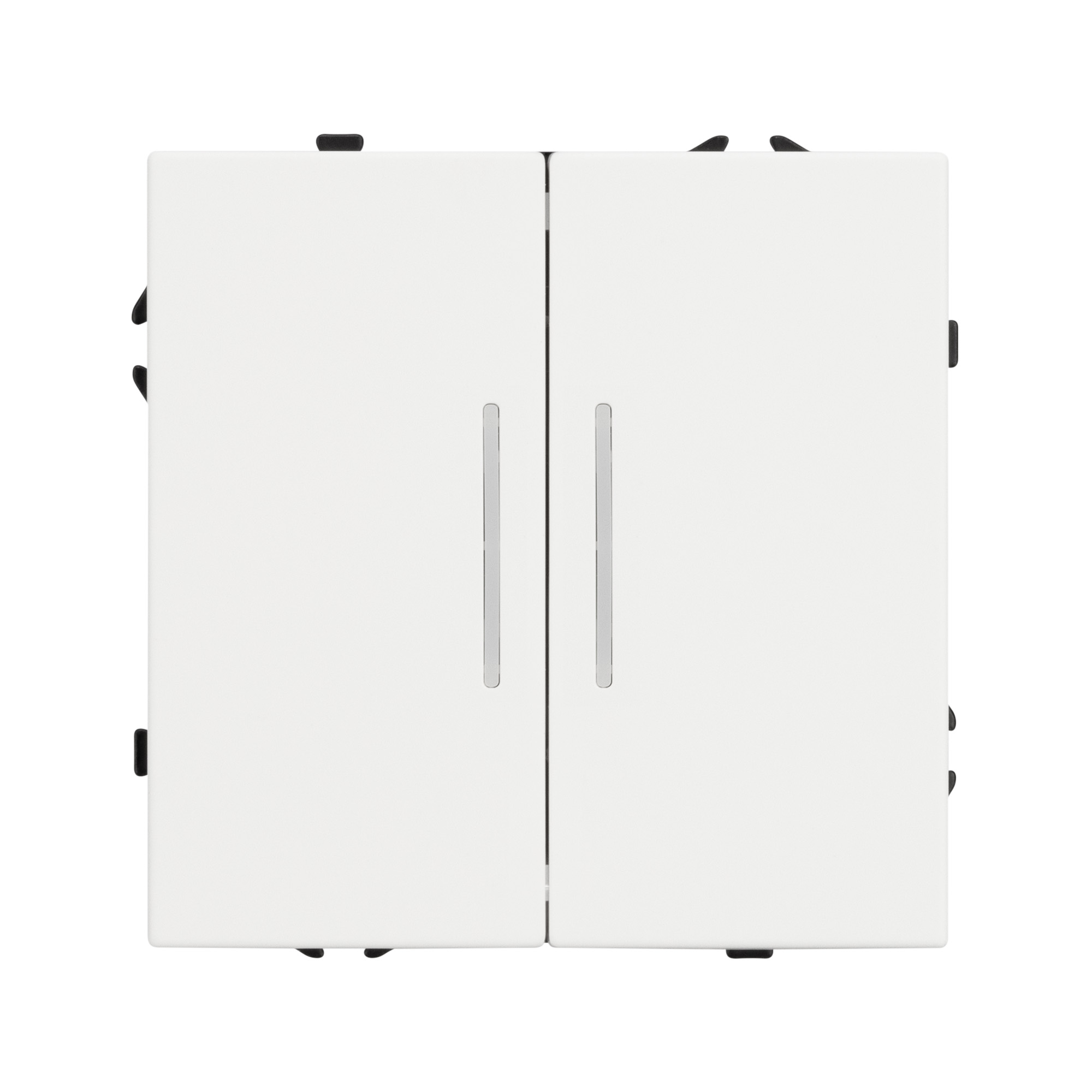Механизм выключателя света клавишный на 1 пост 2 клавиши (проходной). Цвет - белый, с Soft-Touch покрытием. Клавиша имеют активную LED подсветку - cинего свечения. Без фронтальной рамки. Уровень пылевлагозащиты IP20. Выключатель устанавливается в стандартный круглый подрозетник круглого сечения диаметром 60мм.