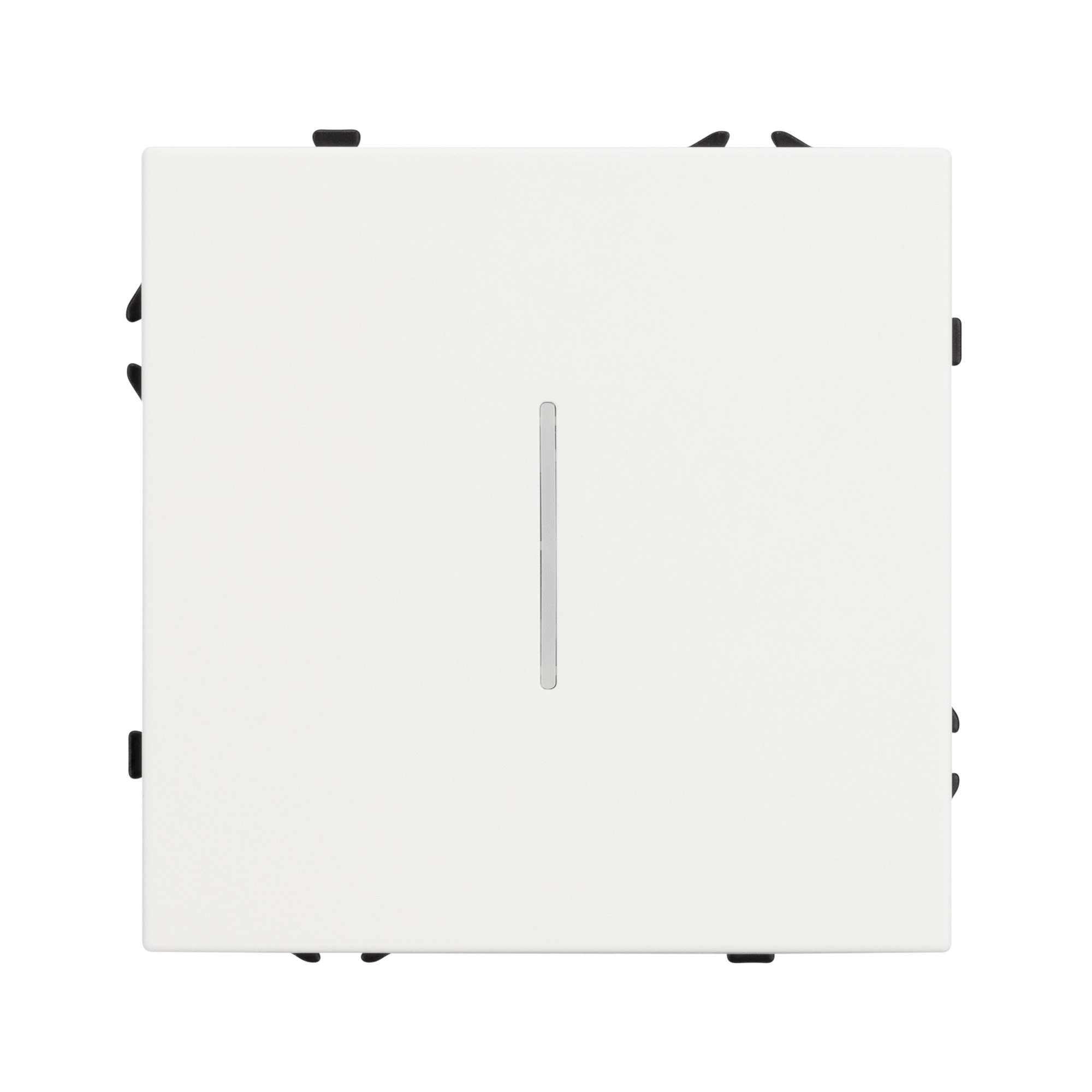Механизм выключателя света клавишный на 1 пост 1 клавиша (непроходной). Цвет - белый, с Soft-Touch покрытием. Клавиша имеют активную LED подсветку - cинего свечения. Без фронтальной рамки. Уровень пылевлагозащиты IP20. Выключатель устанавливается в стандартный круглый подрозетник круглого сечения диаметром 60мм.