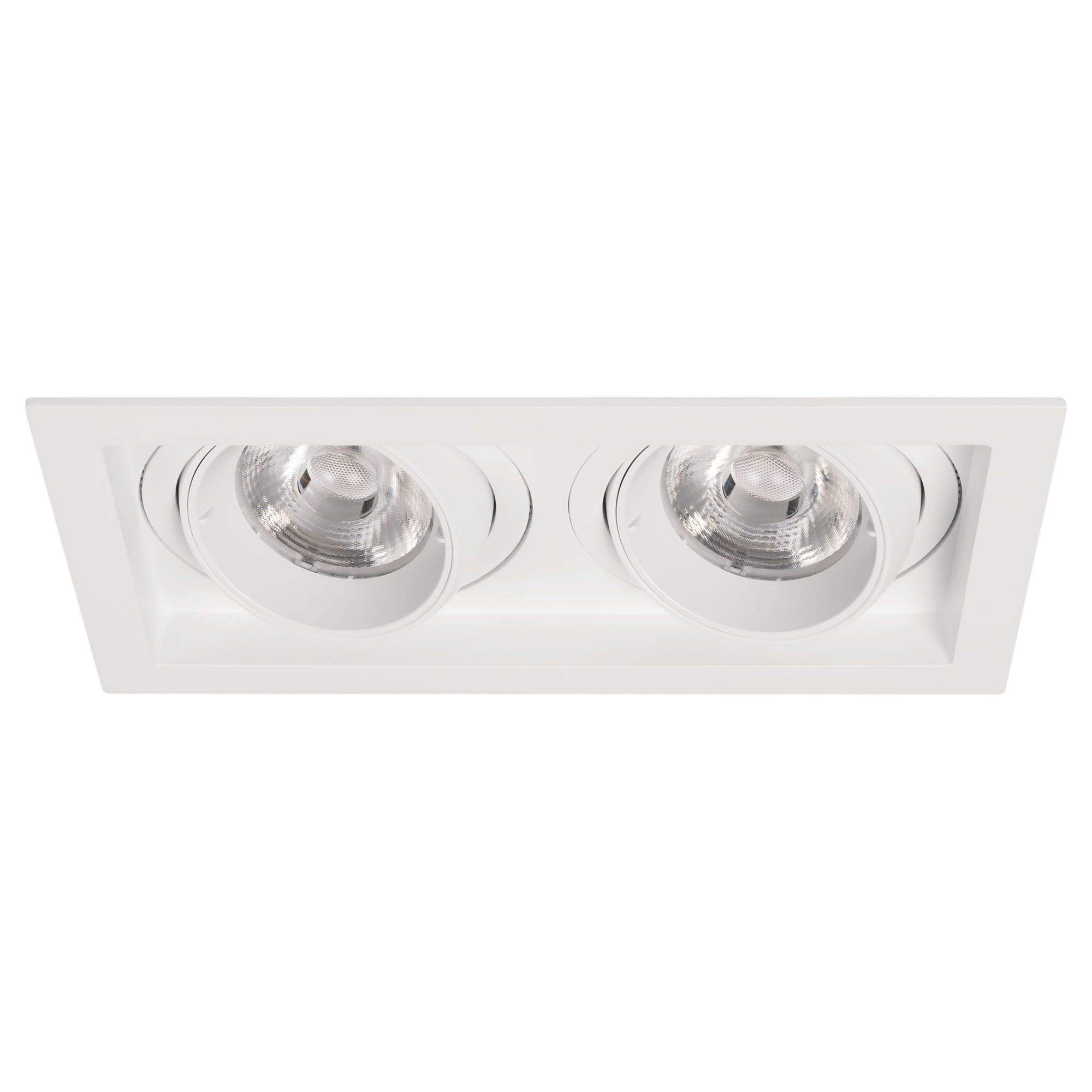 Встраиваемый карданный светильник. Мощность 2х20 Вт, св. поток 4264 лм, 106 лм/Вт, дневной 4000 K, CRI>92, угол 40°, напряжение питания 230 В. Белый корпус из алюминия, черная вставка, степень защиты IP20. Размер: длина 210 мм, ширина 117 мм, высота 105 мм. Монтаж встраиваемый, установочное отверстие: длина 190 мм, ширина 95 мм. Драйвер 24-42 В, 500 мА, пульсация <2%.